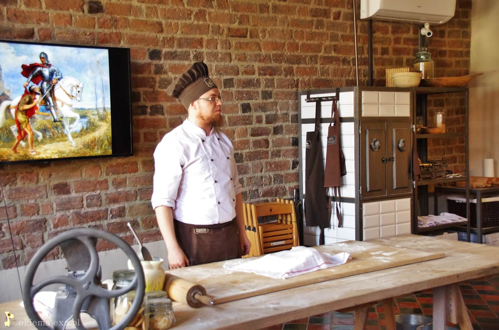 Jak już zażegnaliśmy koziołkowy kryzys udaliśmy się do Rogalowego Muzeum na pokaz o 12.30 (są jeszcze o 13:45 i 15:00). Możemy polecić Wam to miejsce z czystym sumieniem. Prowadzący cały pokaz robią to naprawdę fenomenalnie. W zabawny sposób wprowadzają elementy historii miejsca w którym znajduje się muzeum, gwary poznańskiej oraz rogalowych tajników. Co ważne zwłaszcza dla rodzin z dziećmi prowadzący co jakiś czas wywołuje grupę dzieci/dorosłych aby pomogły w przygotowaniu kolejnego etapu wytwarzania rogala. Także czas mija nie wiadomo kiedy. Na koniec jest jeszcze degustacja!