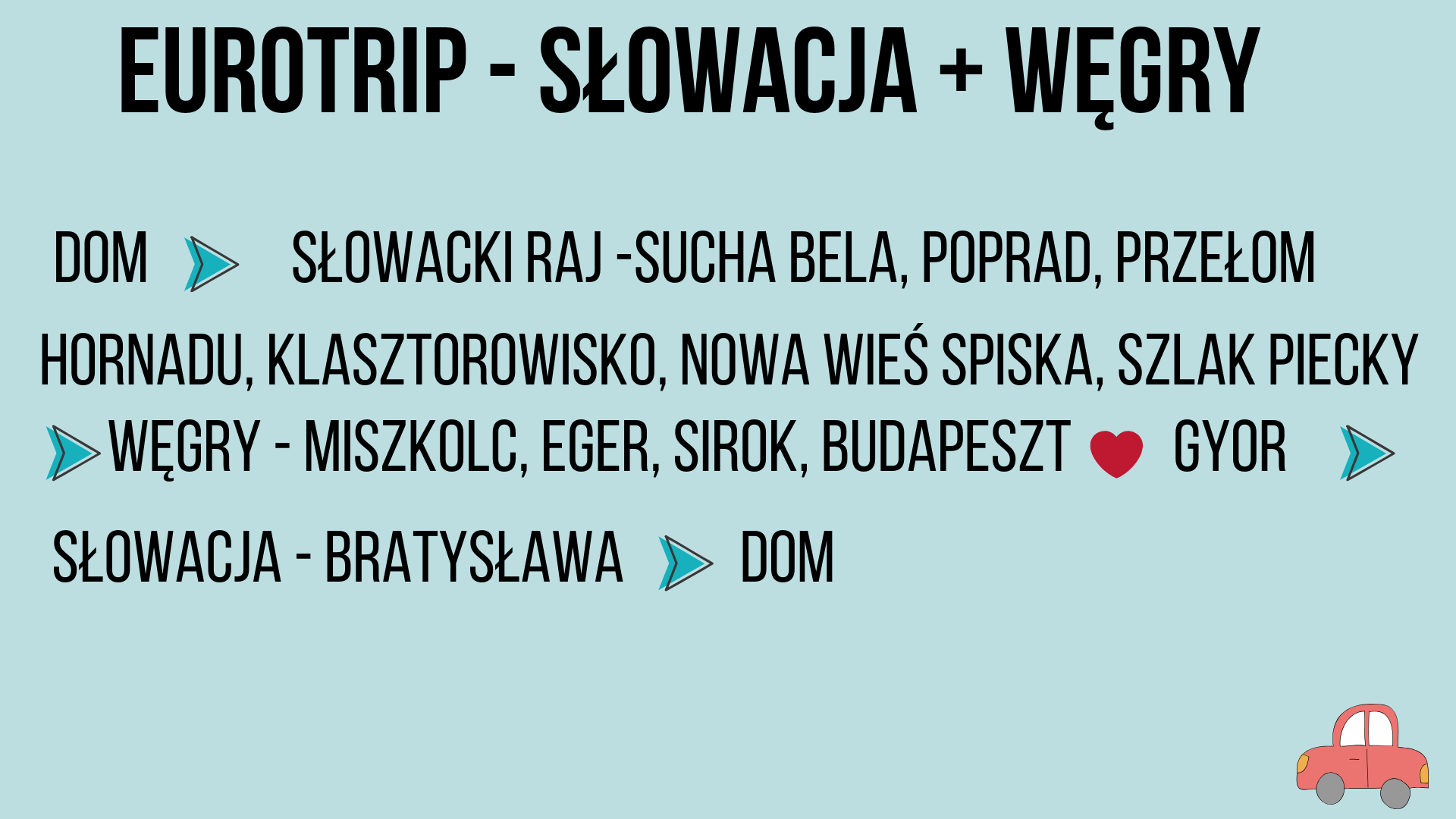Lubimy jeździć samochodem, nawet bardzo. Dlatego spora część naszych wyjazdów to właśnie samochodowe objazdówki. O części miejsc, które odwiedziliśmy już pisaliśmy. Postanowiliśmy jednak zebrać to w całość opisując harmonogram kolejnych wyjazdów. Na pierwszy ogień Eurotrip Słowacja – Węgry.