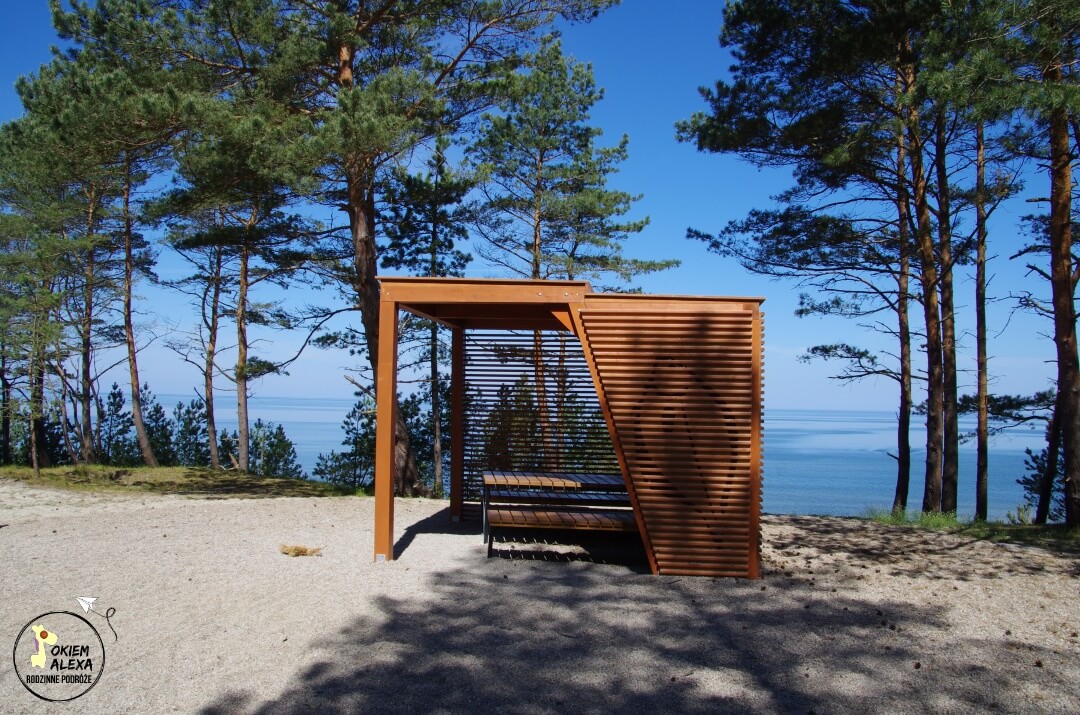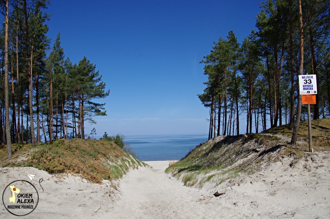 Odcinek Krynica Morska – granica jest bardzo dobrze oznakowany i nie da się tutaj zgubić. Dodatkowo po drodze znajdziecie bardzo fajną wiatę przystankową, gdzie możecie chwilę odpocząć. Ten odcinek trasy od morza oddziela dość szeroki pas lasu. Jednak co chwilę będziecie mijać kolejne wejście na plażę.