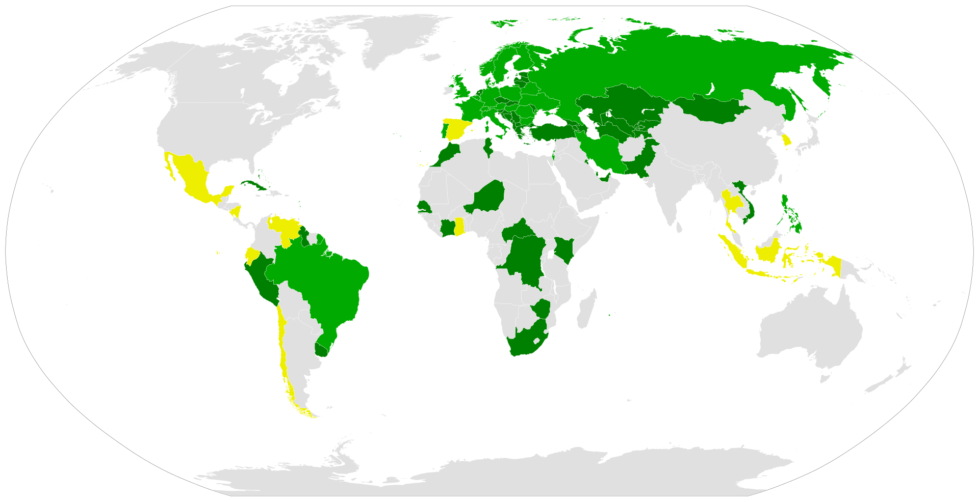 Kolor zielony – kraje, które podpisały konwencję wiedeńską , oraz te które jej nie podpisały, ale stosują się do niej -kolor żółty.